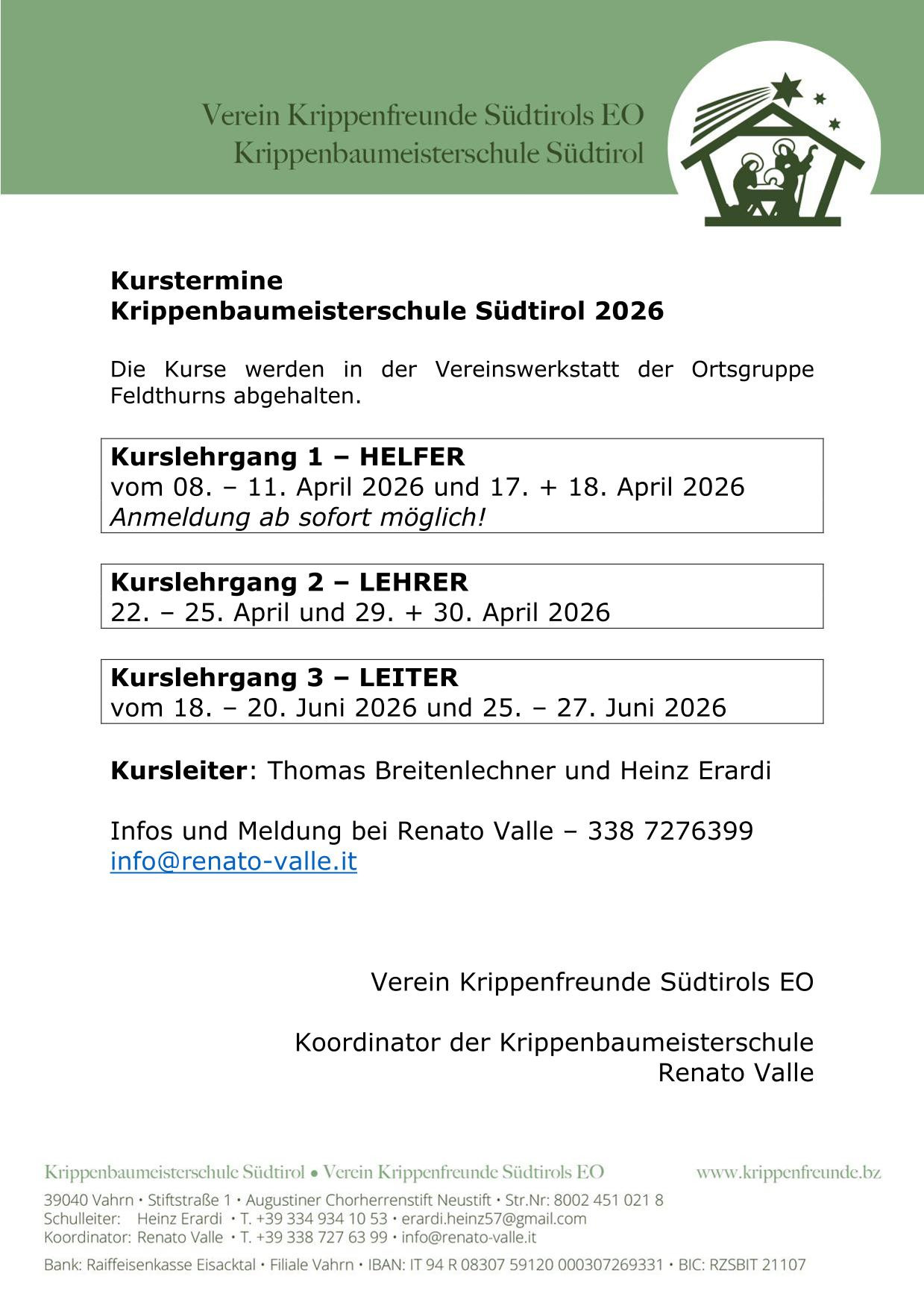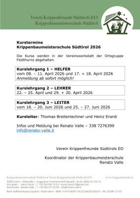 Krippenbaumeisterschule Südtirol 2026