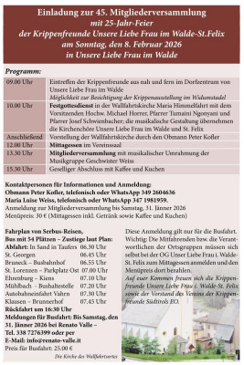 Auf euer Kommen freuen sich die Krippenfreunde Unsere Liebe Frau im Walde-St. Felix sowie der Vorstand des Vereins der Krippenfreunde Südtirols!