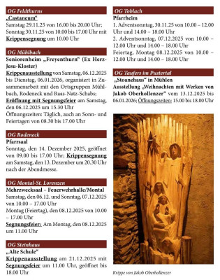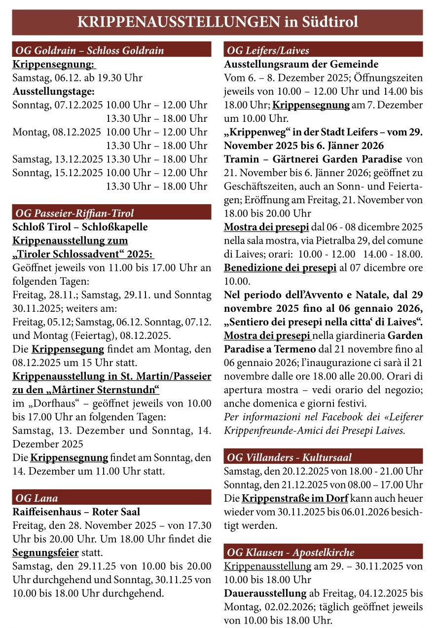 Krippenausstellungen in Südtirol